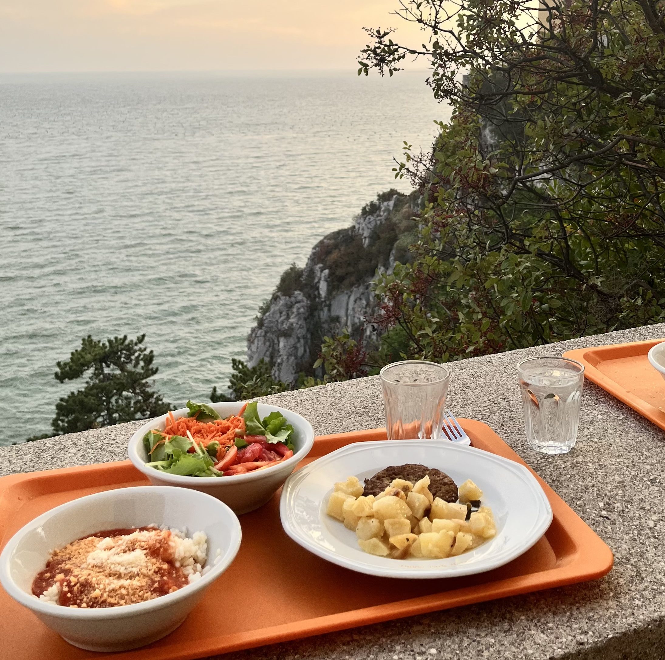 村は、美しいアドリア海に面しており、夏には多くの生徒が徒歩5分の海で泳ぐ姿が見られます。また、Carso(カルソ)と呼ばれる徒歩5分で入ることができる山や、詩人リルケが歩いたとされる遊歩道など、自然に囲まれた美しい場所となっています。